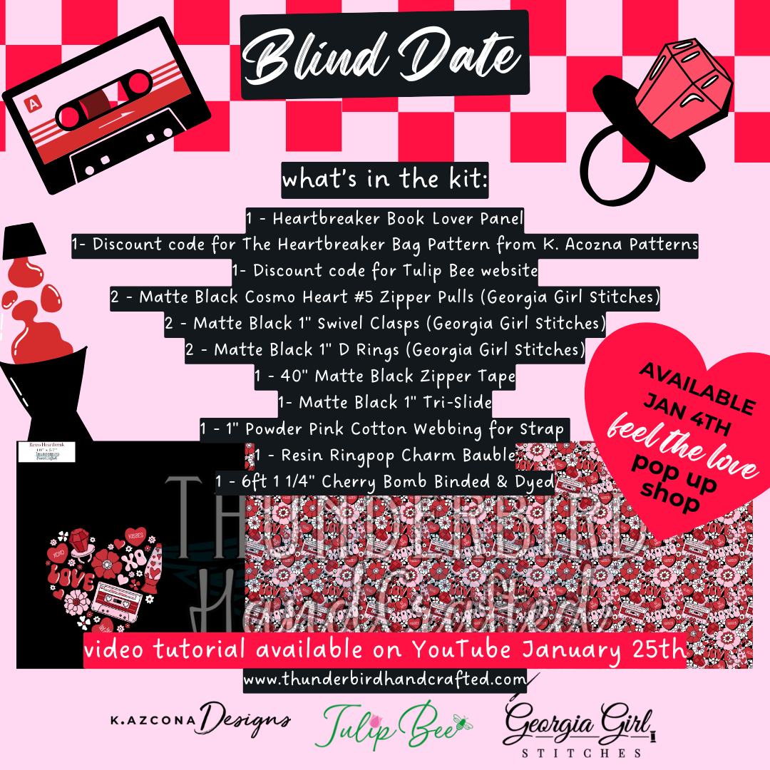 Inside your blind date, you’ll discover the Heartbreaker Book Lover Panel, designed to be the star of a bag that carries stories, secrets, and a little bit of romance wherever you go. It’s paired with perfectly coordinated hardware and webbing from Georgia Girl Stitches, chosen to make your project feel polished and intentional from the very first stitch.